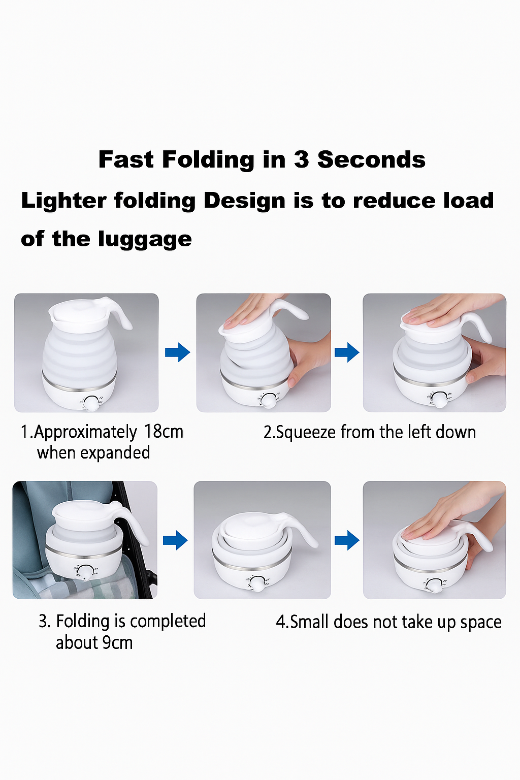 Enjoy hot water anytime, anywhere with this portable 600mL electric kettle. Its sleek, foldable design makes it perfect for travel, office use, or small kitchens, while the fast heating technology ensures your drinks and instant meals are ready in minutes.